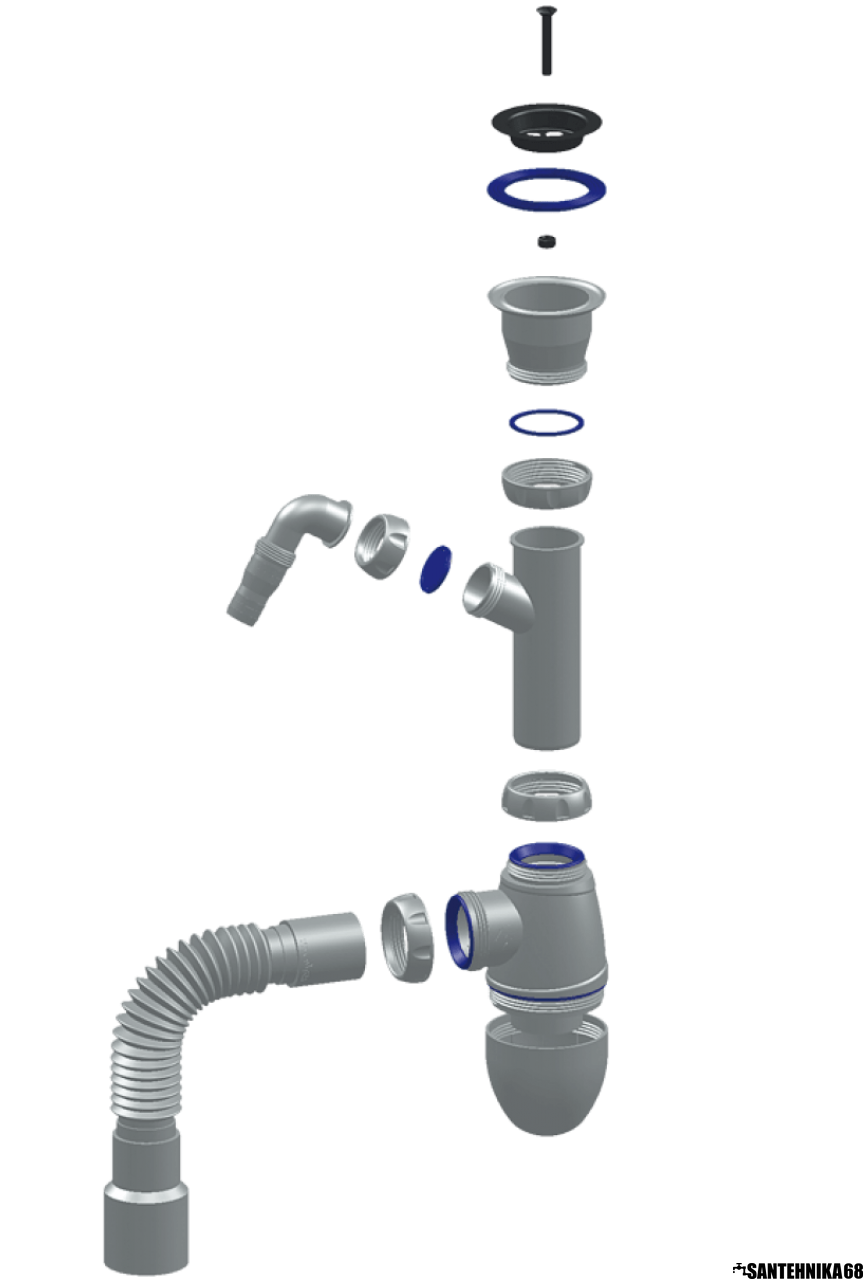Cифон для мойки с отводом для стиральной машинки и прикручивающимся выпуском Unicorn В320V