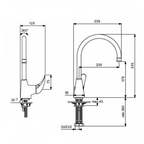- Угол поворота излива 360°R-излив