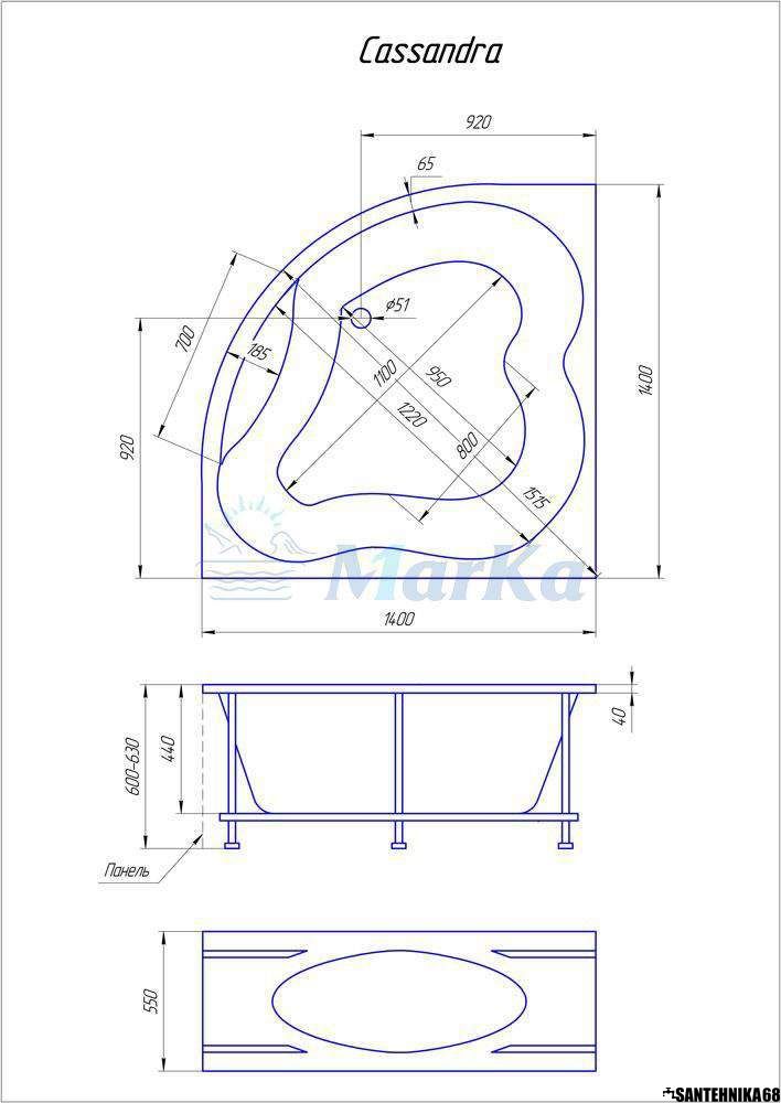 Интересная форма угловой гидромассажной ванны Cassandra не только придает ей оригинальность, но и дает вам целый спектр различных вариантов расположения в ней. Акриловая ванна Кассандра довольно компактная, что подтверждают ее габариты 140x140x63 см. Приобрести акриловую ванну Cassandra можно в одном из фирменных магазинов САНтехника68 в Тамбове по весьма привлекательной цене.