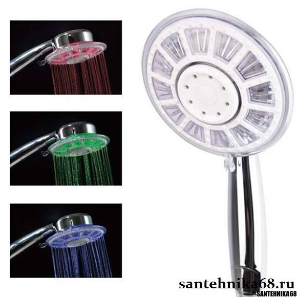 | Комплектация | Лейка 2 режима, светодиоды, работающие без батареек (Гидрогенератор), 3 Цвета меняются в зависимости от температуры воды, совместимость со всеми типами шлангов |