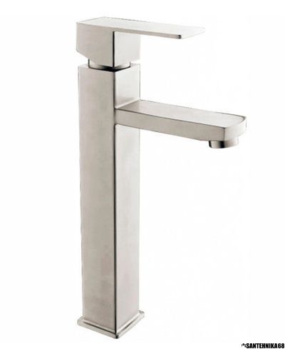 Смеситель для умывальника высокий MELANA F6110 нерж.сталь, однорычажный, сатин, литой излив