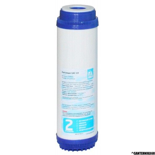 Гранулированный активированный уголь значительно улучшает вкусовые качества воды и устраняет примеси хлора, улучшает вкус, цвет и запах воды. Картридж имеет собственные префильтр и постфильтр, задерживающие механические примеси и частички угольной пыли.