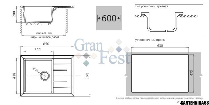Керамическая мойка для кухни Granfest Гранфест Quadro GF-Q650L