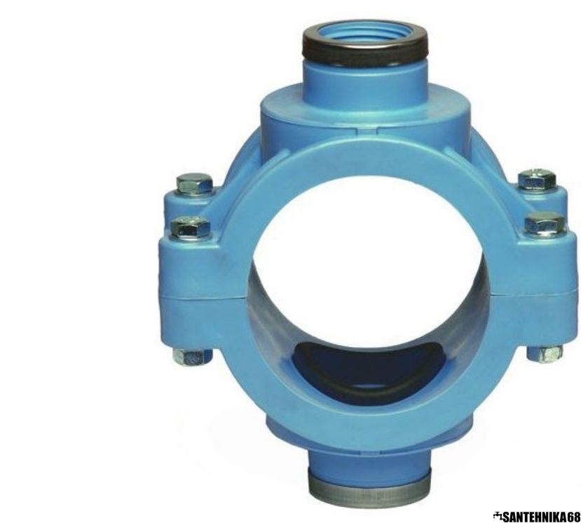 Хомут врезной на воду седелка ПЭ Unidelta на ПНД трубу 25 32 40 50 63 с внутренней резьбой