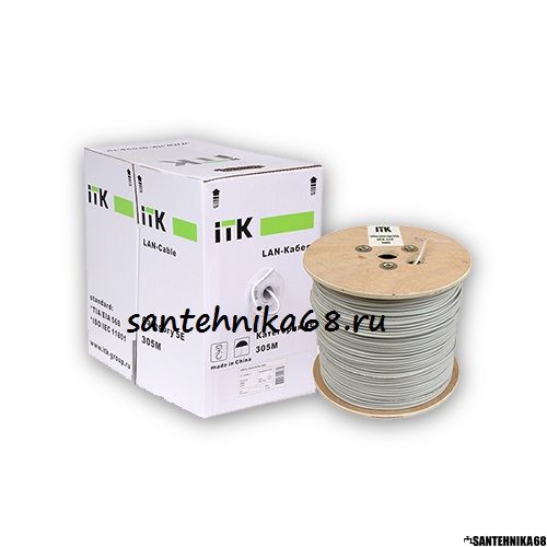 Кабель связи витая пара ITK U/UTP, кат. 5E 4х2х24AWG solid, PVC, серый (бухта 305м) для прокладки ethernet