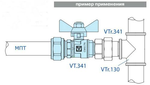 Шаровой кран редуцированный (уменьшенного прохода) для использования в составе инженерных систем и технологических установок на основе металлопластиковых труб при температуре от –15 до +110 °С и рабочем давлении до 10 бар. Неремонтопригодный, с минимальным ресурсом в 4 тыс. циклов. Оснащен ручкой типа «бабочка» из алюминиевого сплава с эпоксидной покраской. Соединение с металлополимерным трубопроводом – обжимное, двухстороннее. Не предназначен к применению на стояках, магистральных трубопроводах и участках систем, в которых могут возникнуть изгибающие усилия, передаваемые на корпус крана.