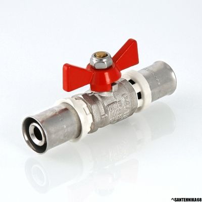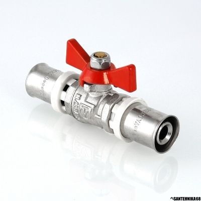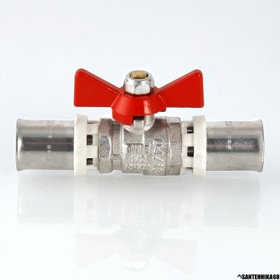Шаровой кран с пресс соединением редуцированный (уменьшенного прохода) для использования в составе инженерных систем и технологических установок на основе металлополимерных труб при температуре от –15 до +110 °С и давлении до 10 бар. Неремонтопригодный, с минимальным ресурсом в 4 тыс. циклов. Оснащен ручкой типа «бабочка» из алюминиевого сплава с эпоксидной покраской. Пресс-соединение с металлополимерным трубопроводом – двухстороннее. Не предназначен к применению на стояках, магистральных трубопроводах и участках систем, в которых могут возникнуть изгибающие усилия, передаваемые на корпус крана.