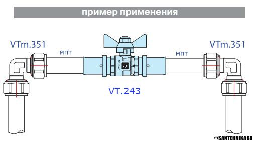Кран шаровой под пресс Valtec 16 х 1/2" вн. и 16*16