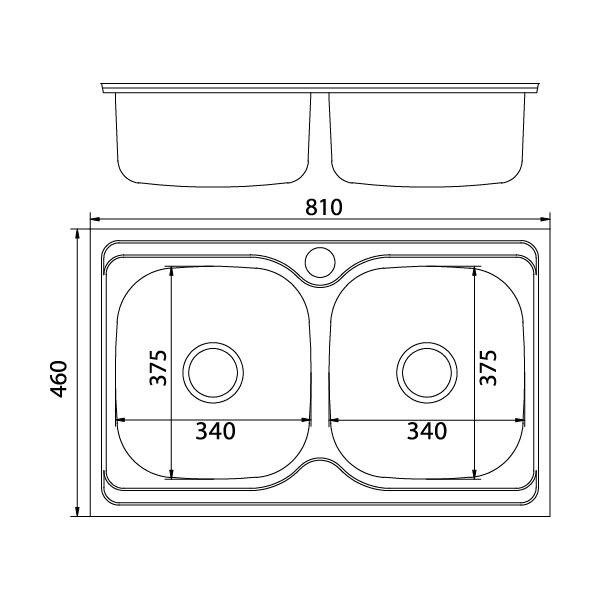 Мойка для кухни врезная Микслайн двойная 46х81см 0,8мм 2-х чаш выпуск 3 1/2 глубина 18см с сифоном 532312