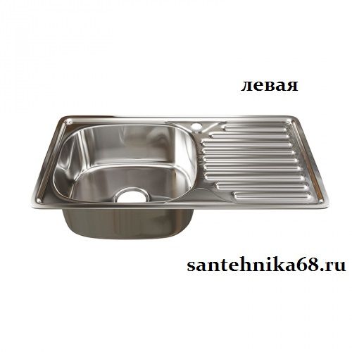 - Мойка для кухни нерж прямоугольная MIXLINE 42х76 0,8мм левая выпуск 3 1/2 с сифоном глубина 18 см 535614
