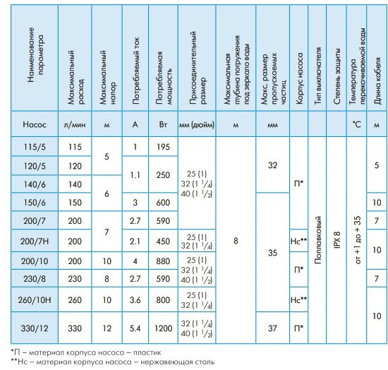 При покупке, осуществляя выбор фекального насоса, нужно исходить из следующих параметров: