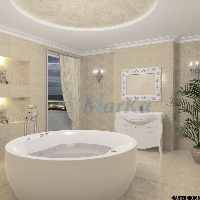 Приобретая ванну Omega, вы становитесь обладателем небольшого бассейна у себя дома, который вмещает в себя 600 бутылок шампанского. Особенно эффектно ванна смотрится, если установлена в центре ванной комнаты.