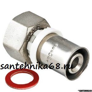 Пресс-фитинг c накидной гайкой обеспечивает присоединение трубы (металлопластиковой или из сшитого полиэтилена) к сантехнике, оборудованной патрубком с наружной резьбой.