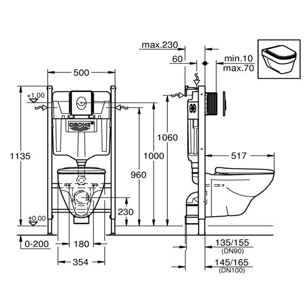 - Инсталляция с двойной кнопкой смыва и комплектом шумоизоляции.