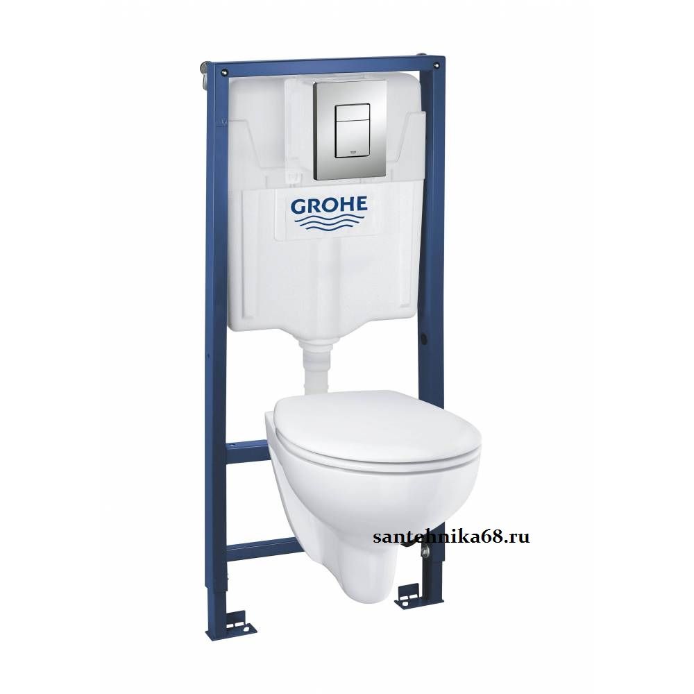 Инсталляция в сборе с унитазом Grohe Solido 5 в 1 39586000: инсталляция Grohe Solido + подвесной унитаз Bau Ceramic + сиденье с микролифтом, панель смыва Skate Cosmopolitan