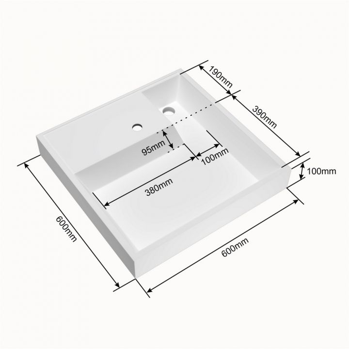 Ширина: 600 мм Глубина: 600 мм Высота: 80 мм Тип: Раковина Установка: Подвесная Форма: Прямоугольная, Квадратная Материал: Литьевой мрамор Дизайн: Современный Цвет: Белый -