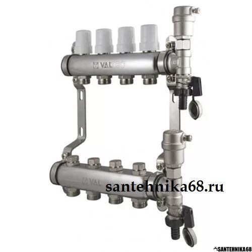 Коллекторная группа из нержавейки в сборе Valtec 1" х 4 выхода Евроконус 3/4 для теплого пола